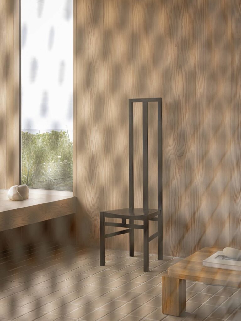 建築家の安藤忠雄が手掛けたアームレスチェア。ウォールナット材という硬質な素材の特性を生かし、背もたれをはじめ、あらゆるディテールにおいてシルエットラインが美しい椅子に仕上がっています。アームレスタイプは背もたれ部分が垂直に立ち上がり、オブジェとしても美しい佇まいを見せます。