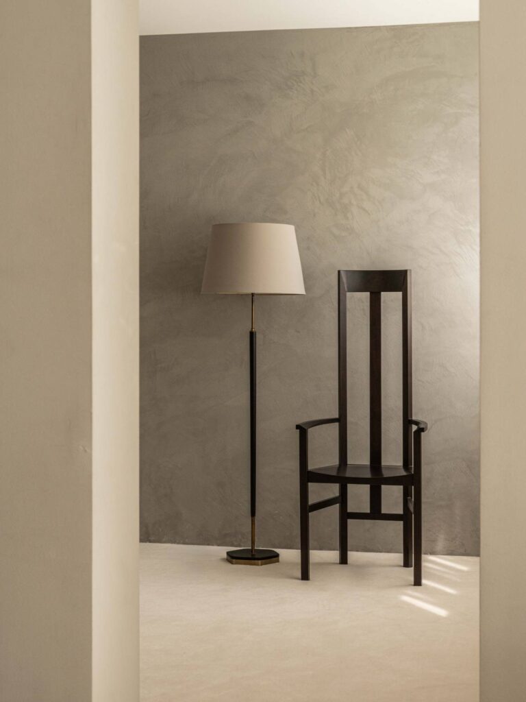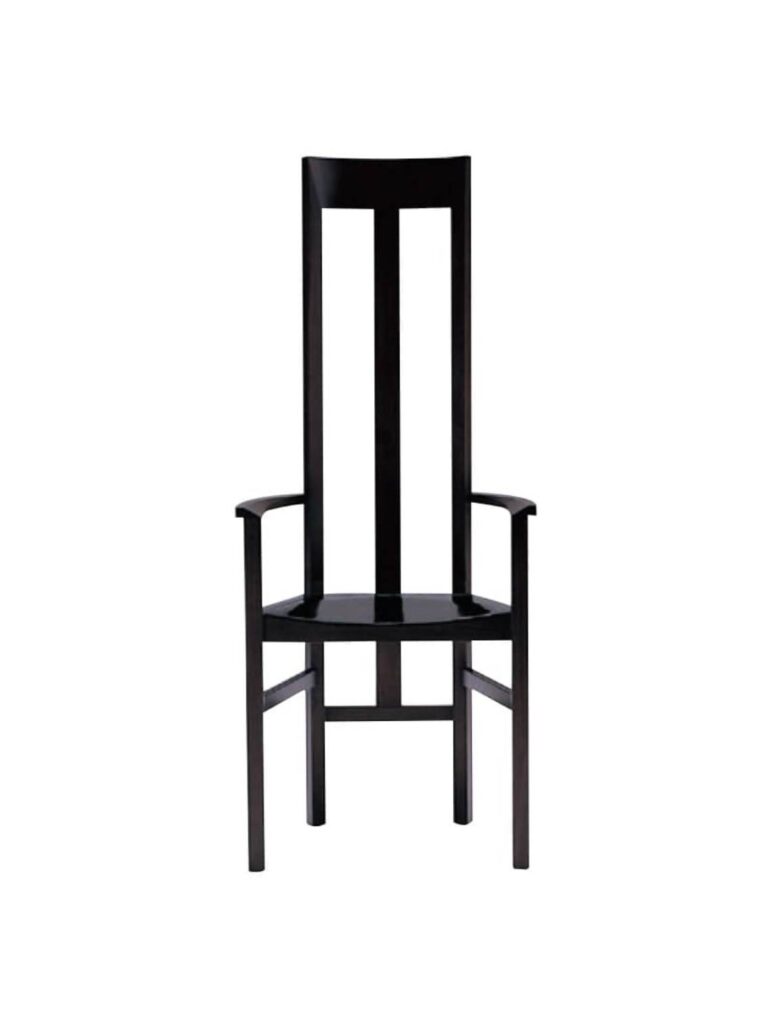 建築家の安藤忠雄が手掛けたアームチェア。ウォールナット材という硬質な素材の特性を生かし、背もたれをはじめ、あらゆるディテールにおいてシルエットラインが美しい椅子に仕上がっています。このアームチェアは背もたれがゆるやかにカーブしており、実用的機能性を持っています。